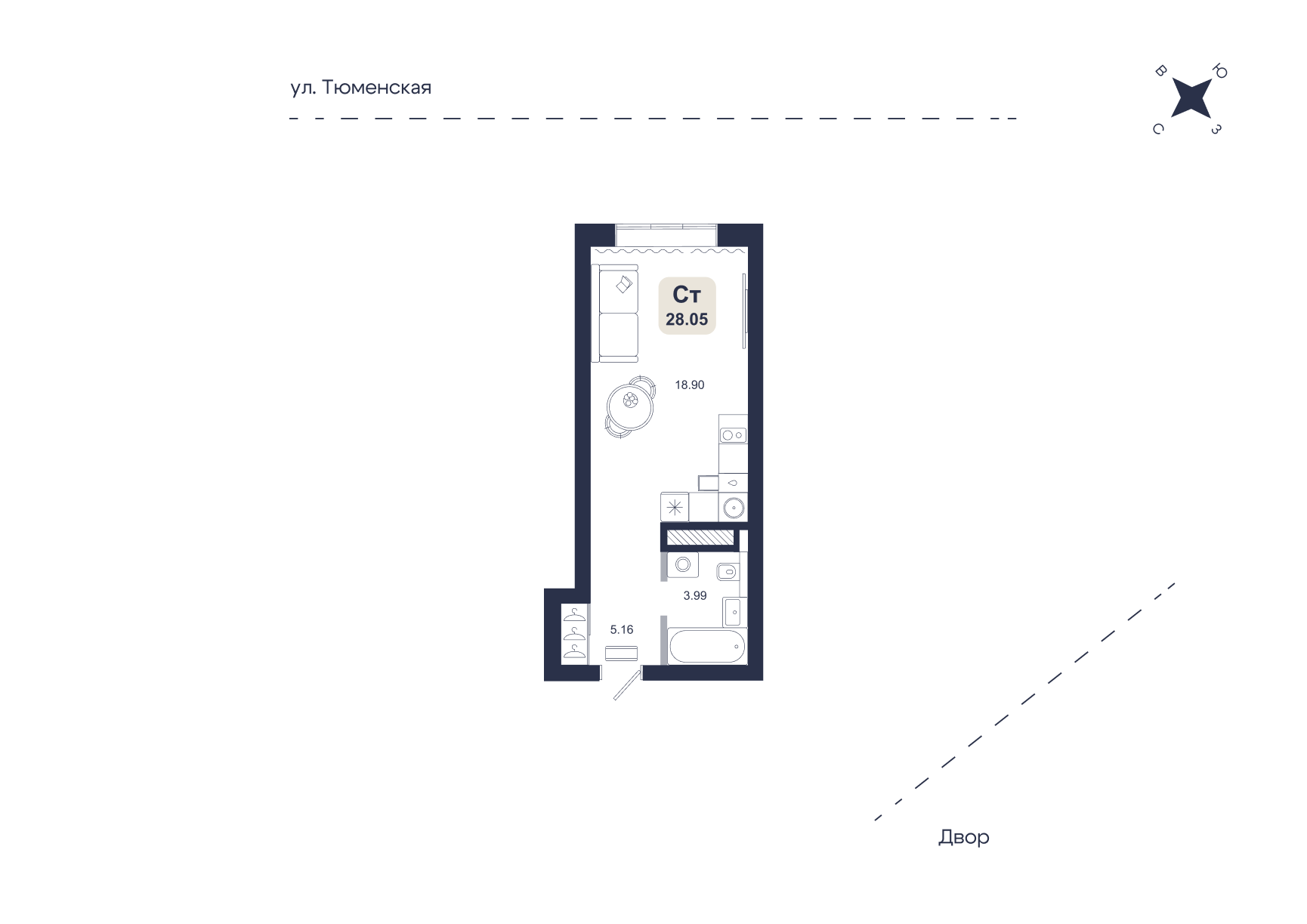 1 ком. 28 м2