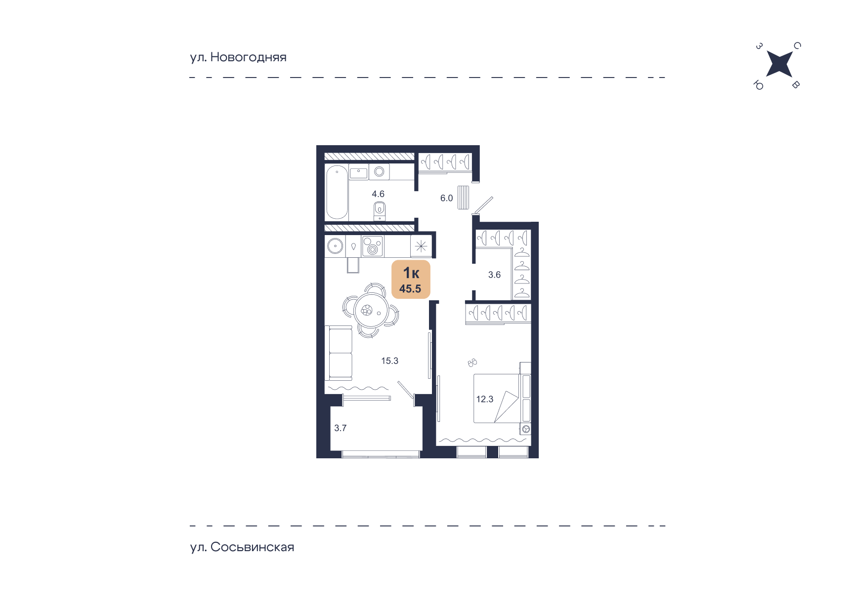 1 ком. 46 м2