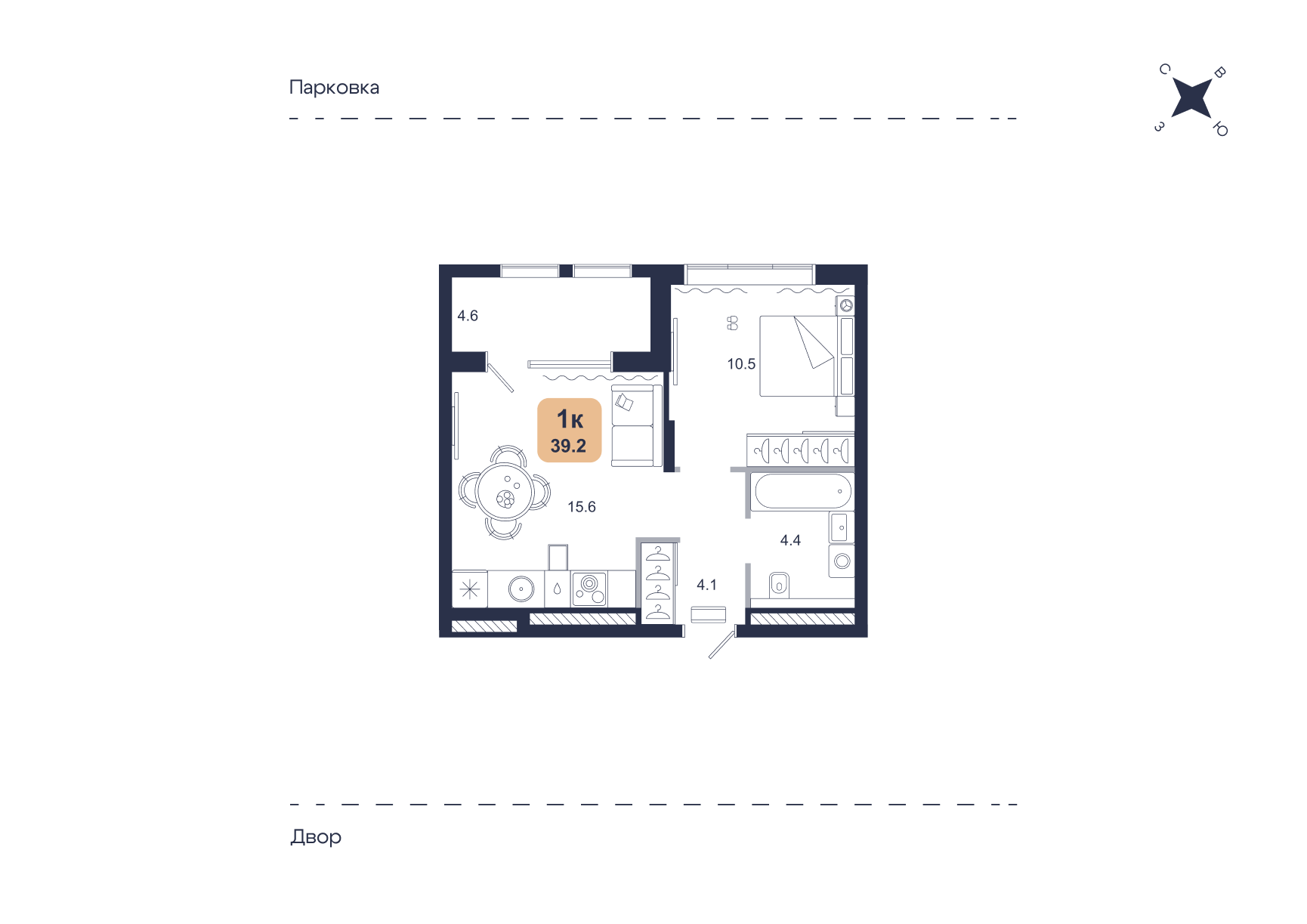 1 ком. 39 м2